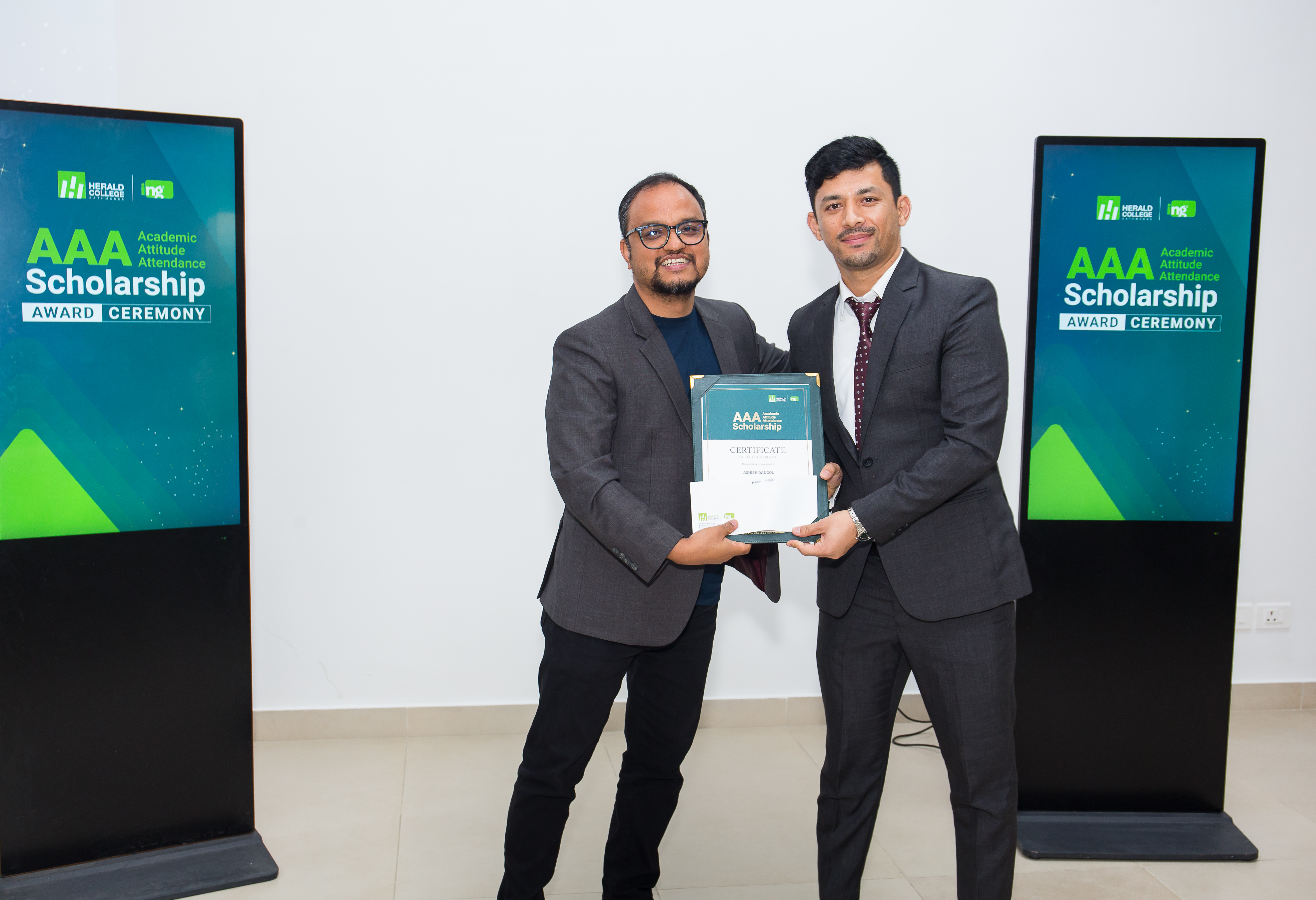 Herald College Kathmandu proudly hosted the ‘AAA Scholarship Award Ceremony 2025’ to recognize students who truly excelled throughout the academic year in academics, discipline, and active involvement within the college community.